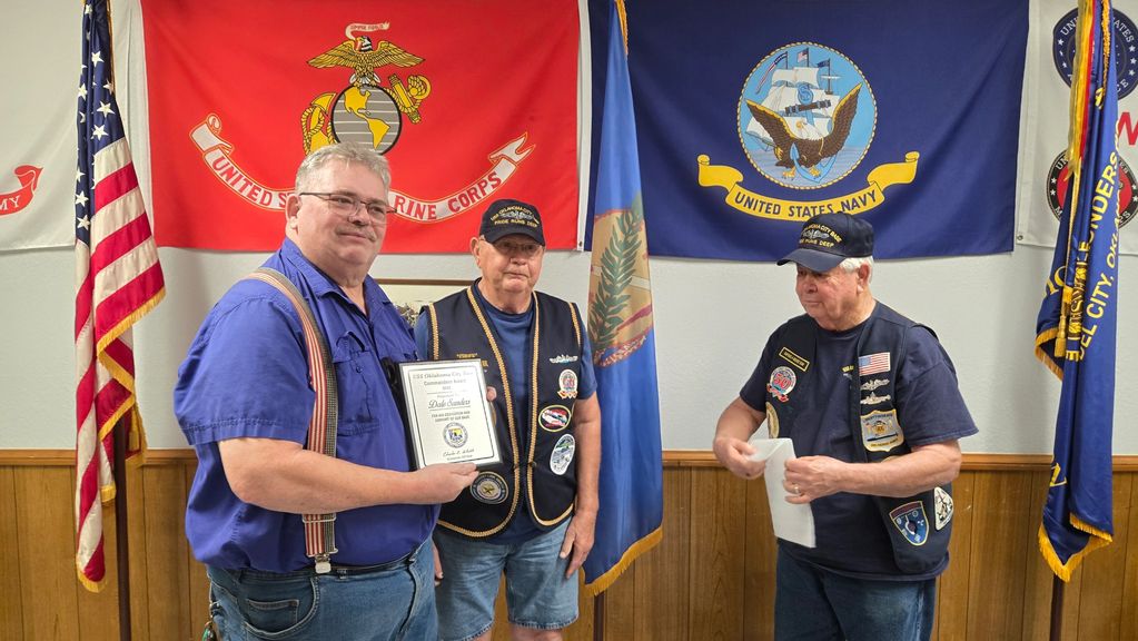 20250802 - Dale Lee Sanders was awarded the 2025 Commanders Award for his dedication and support of our base. Dale serves as our Base Secretary. He is also the alternate Webmaster. Dale organizes the base tolling of the bell in memory of those who gave all, and contributes to maintenance of the base roster. Dale regularly participates in base parades and he faithfully attends base meeting.
