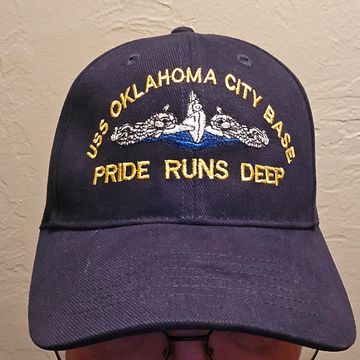 Description: Blue cap, adjustable head band, Dolphins on a blue wave.